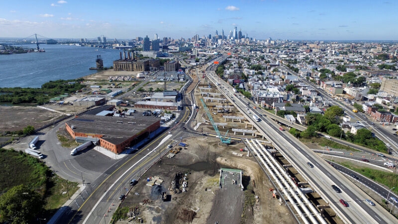 GR3 is a complete reconstruction of northbound I-95 between the Vine Street Expressway and Allegheny Ave. Featuring 49 spans, the mainline viaduct measures approximately a mile and half. The reconstruction adds an additional travel lane, bringing the total to 4 lanes of through traffic plus an auxillary lane for on and off ramps.